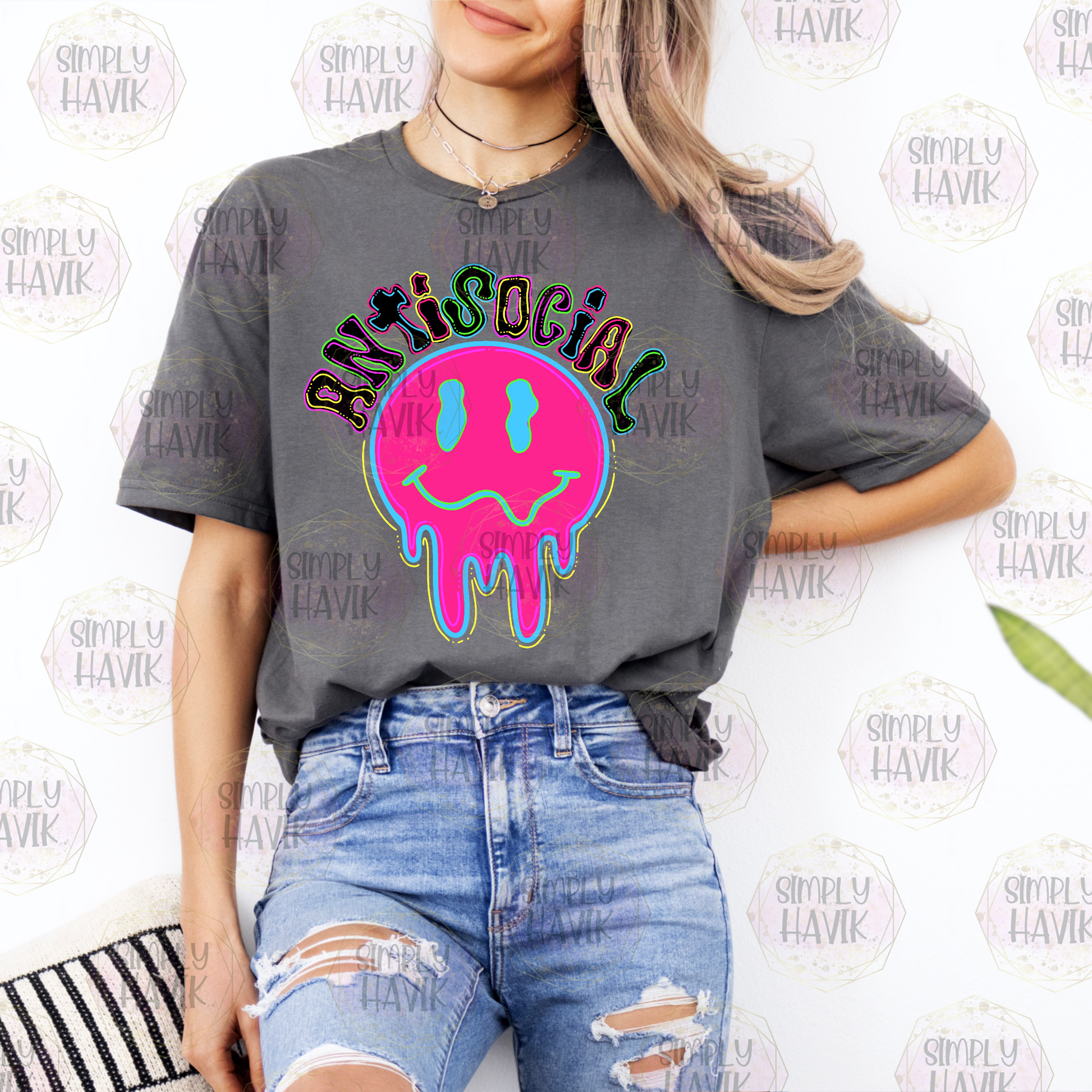 Unleash your wild side with AntiSocial, the perfect shirt for those who don't play well with others. This quirky and playful shirt is sure to make a statement wherever you go. Its standout feature? Helping you be seen and not socializing (but in a cool way, of course)!