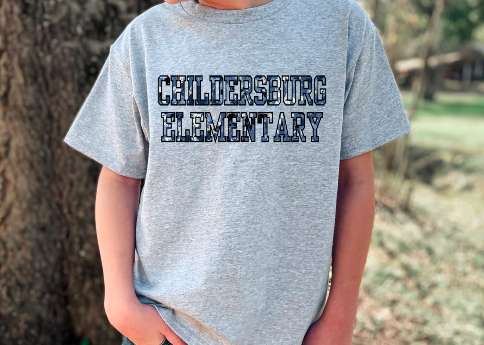 Stay cool and stylish with the Childersburg Elementary Camo shirt. Made with comfort in mind, this shirt is perfect for everyday wear. With a trendy camo design, your child will stand out from the crowd. Stay comfortable and on-trend with this must-have shirt.