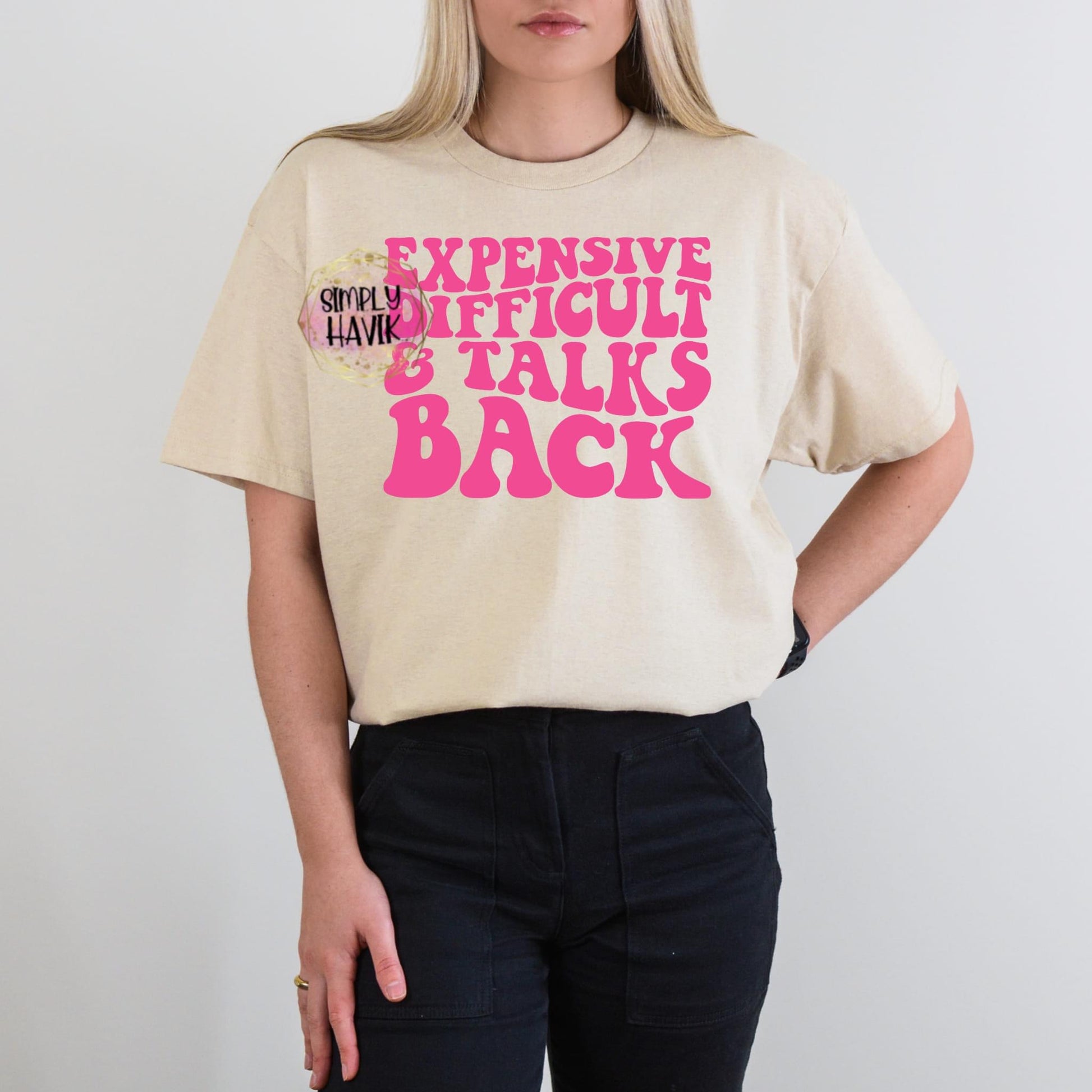 The Expensive, Difficult & Talks Back t-shirt is perfect for those looking to add adult humor to their wardrobe. It comes with an inexpensive price tag and amusing sound effects. Guaranteed to add a special touch to any outfit.