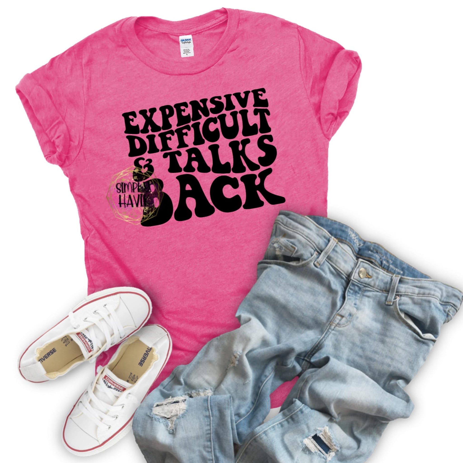 The Expensive, Difficult & Talks Back t-shirt is perfect for those looking to add adult humor to their wardrobe. It comes with an inexpensive price tag and amusing sound effects. Guaranteed to add a special touch to any outfit.