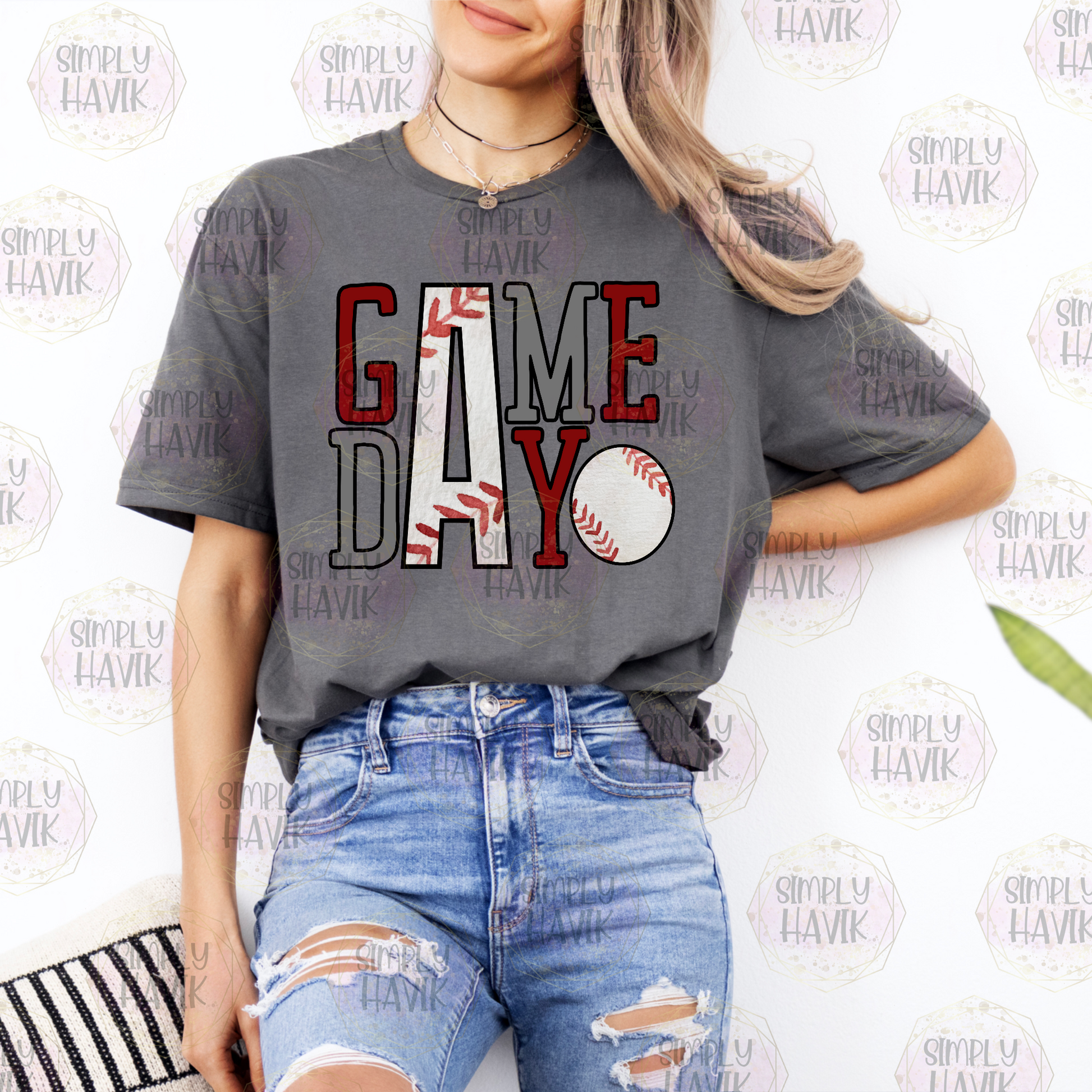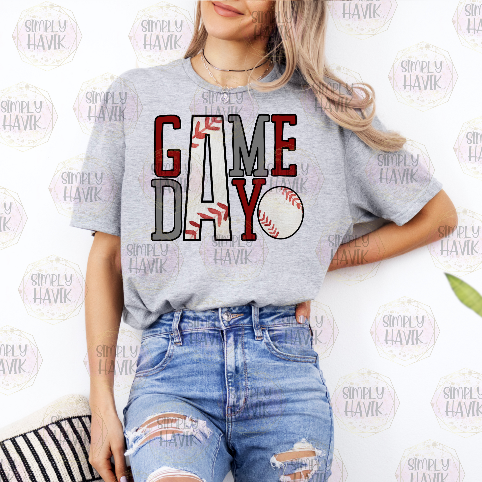 Get ready for the big game with our Game Day shirt! Featuring a unique baseball-softball color scheme, this custom shirt will have you looking like a winner. Perfect for game day or any day you want to show off your love for the game. Score a home run with this playful and quirky shirt!