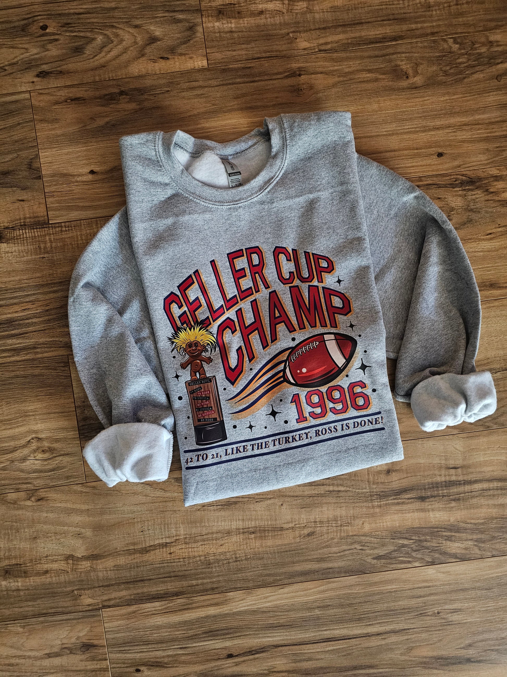 Show off your Geller Cup fandom with this stylish Friends sweatshirt. Crafted from high-quality cotton, it features a comfortable fit and vibrant colors. This crew neck design is guaranteed to make a statement, wherever you wear it. Be part of the Geller Cup club in style.