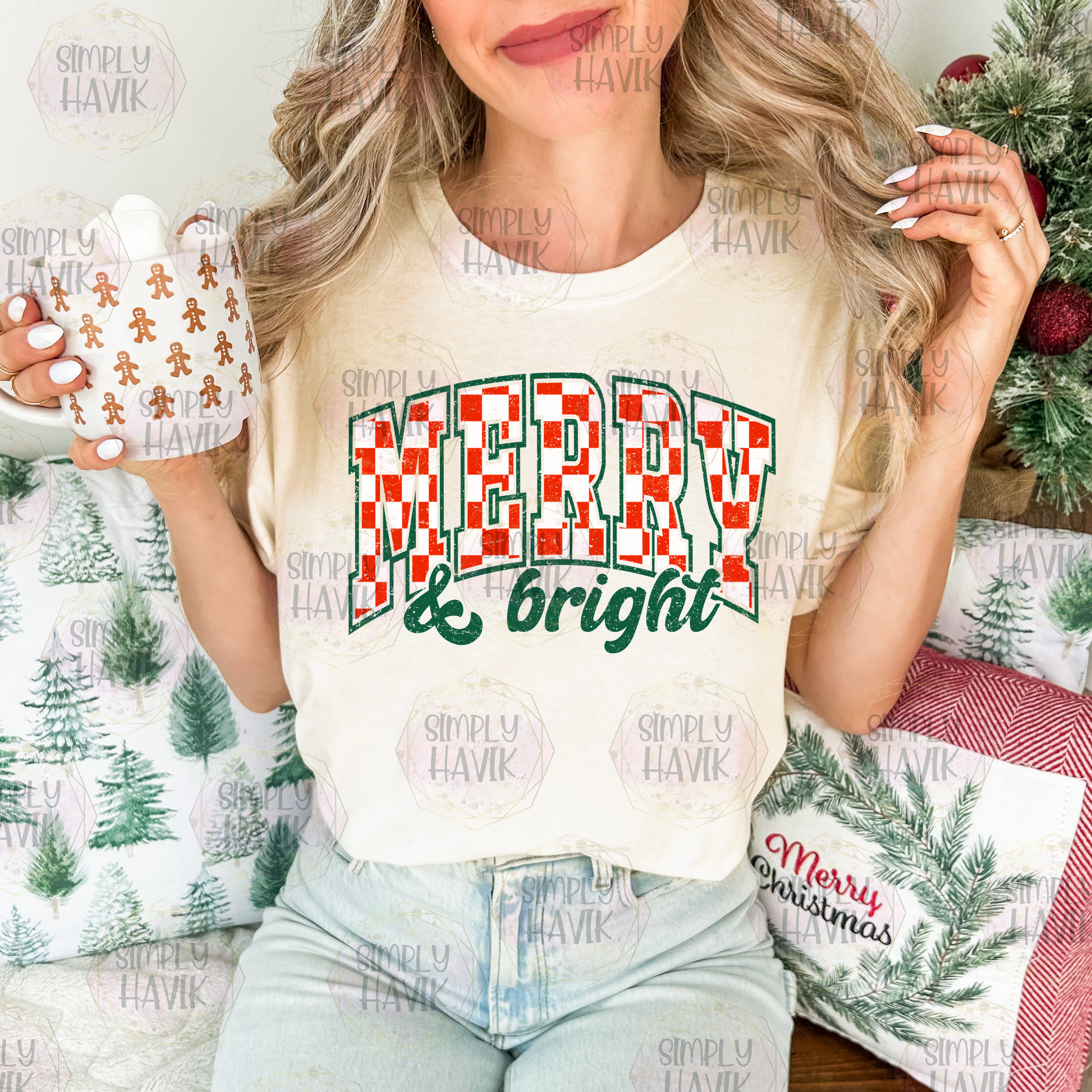 Stay merry and bright with our playful and quirky shirt! This shirt will keep you feeling fun and lighthearted with its unique design and comfortable fit. Spread joy and laughter wherever you go in our Merry& Bright shirt.