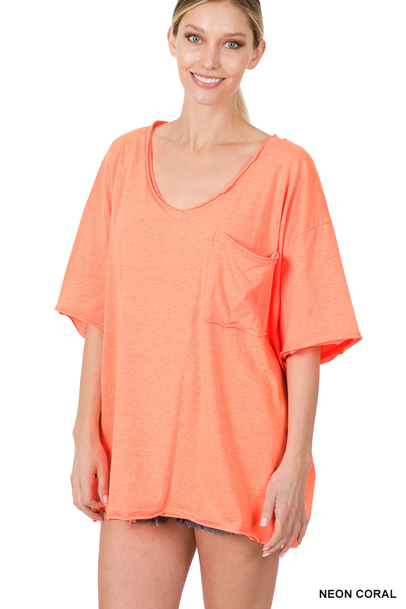 OVERSIZED FRONT POCKET RAW EDGE BOYFRIEND TEE