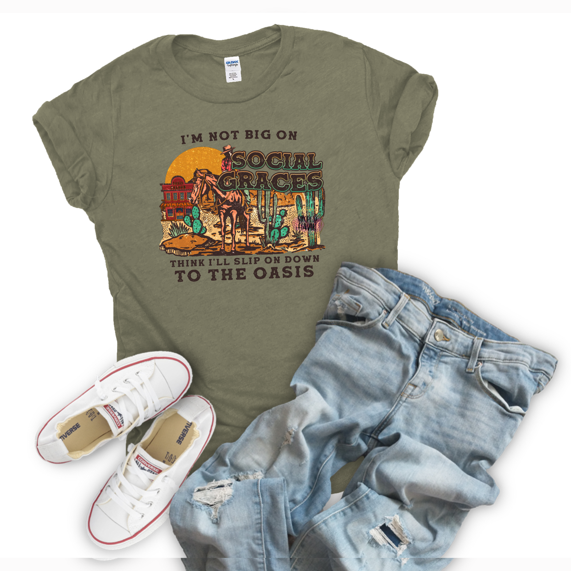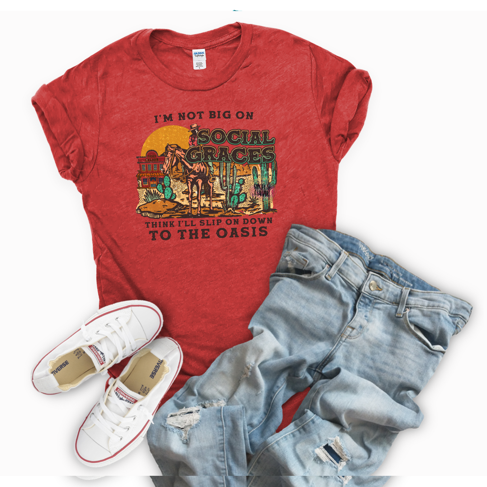 Social Graces has perfected your weekend look with this oasis-inspired tshirt. Its subtle sunset shade creates a sophisticated and balanced look, enabling you to look your best while feeling comfortable.